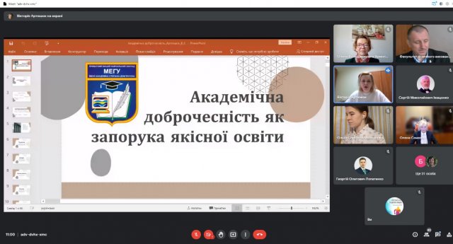 Корисну інформацію презентувала Вікторія Артюшок, кандидат економічних наук, доцент, завідувач Центру забезпечення якості вищої освіти Міжнародного економіко-гуманітарного університету імені академіка Степана Дем'янчука, у доповіді «Академічна доброчесність як запорука якісної освіти».