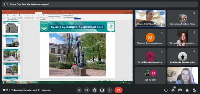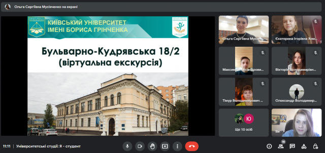 28-31 жовтня 2022 року студенти перших курсів Факультету в рамках дисципліни «Університетські студії» відвідали віртуальні екскурсії до Музею Бориса Грінченка. Учасники зустрічей дізналися про історію Бульварно-Кудрявської вулиці, спорудження жіночої торгівельної школи імені Пелагеї Терещенко та експозиції Музею. А також обговорили життєписи видатних українців, пов'язаних з історією нашого Університету.