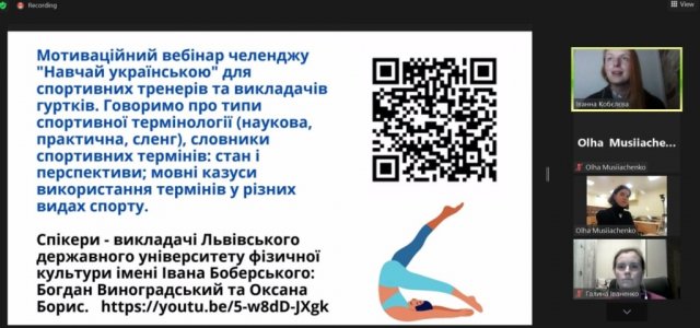 07 листопада 2022 р. з нагоди Дня української писемності та мови відбулася панельна дискусія «Як тренувати українською? Українська мова в галузі фізичної культури і спорту». Учасники зустрічі обговорили досвід переходу на українську в професійній діяльності тренерів, шляхи підвищення рівня володіння українською мовою та використання україномовної спортивної термінології фахівцями у галузі фізичної культури і спорту.