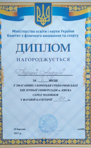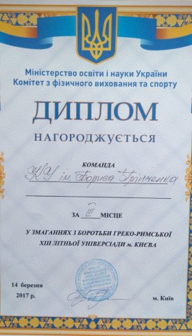 Вітаємо найкращого спортсмена міста з греко-римської боротьби, Парцея Андрія Богдановича, студента ІІ курсу спеціальності «Фізичне виховання», який виборов І місце у змаганнях з греко-римської боротьби ХІІІ літньої Універсіади м. Києва 2017 року, та команду Київського університету імені Бориса Грінченка, яка у змаганнях посіла почесне ІІІ місце!