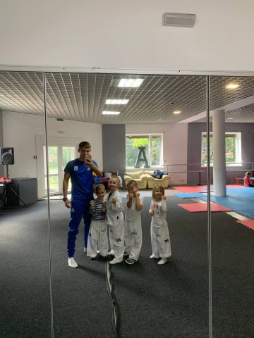 У клубі «Макс Спорт» студент IV курсу групи ТДб-1-19-4.0д Тарасенко Давид, майстер спорту України міжнародного класу, провів для юних спортсменів серію тренувань з тхеквондо, присвячених правилам техніки безпеки під час тренувань і безпечному виконанню вправ у єдиноборствах.