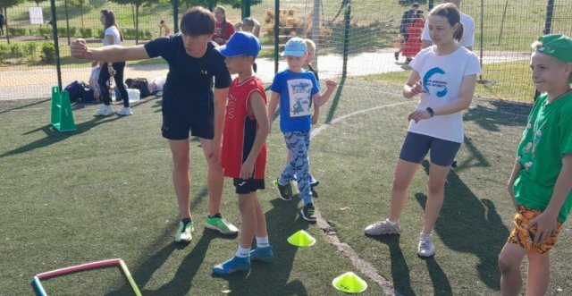 Наші студенти проводили заняття з дитячої легкої атлетики, конкурси для трьох вікових категорій дітей та дорослих, долучилися до роботи локації «Стронгмен» і взяли участь у забігу до Дня Києва.