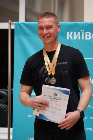 2 місце - Тимофій Лопата, представник Циклової комісії з фізичного виховання Фахового коледжу «Універсум».