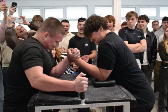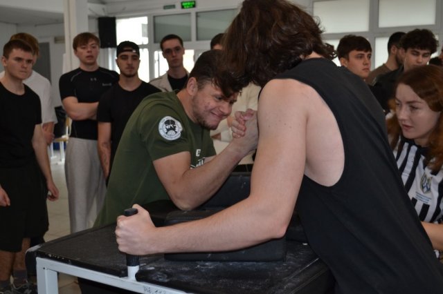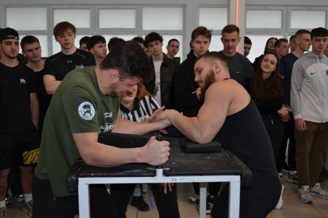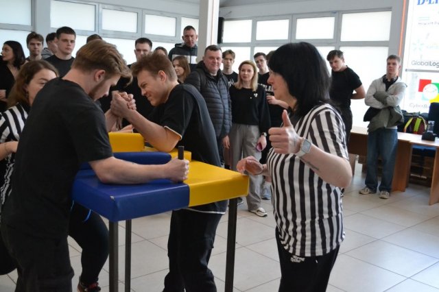Артем РИМАР (група ФТЕб-1-24-4.0д) першим розпочав боротьбу у в/к до 70 кг, серед 20 учасників він приніс команді 19 балів. У в/к до 80 кг змагались троє наших студентів, серед 25 учасників вагової категорії: Артем КОВАЛЕНКО (група ТДб-1-25-4.0д) додав до командної копилки 10 балів; Богдан МЕЛЬНИЧУК (група ТДб-1-25-4.0д) додав 22 бали, абсолютно кращий результат в нашій збірній у Євгена ОРЕХОВА, студента групи ТДб-1-25-4.0д. Євген посів 6 місце на ліву руку та 5 місце на праву, додавши в командний залік 48 балів.