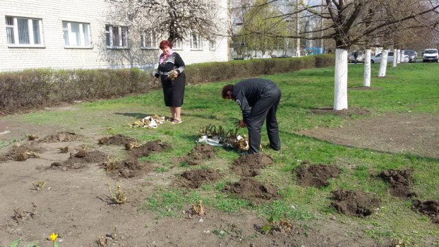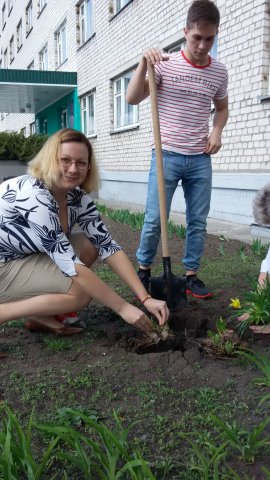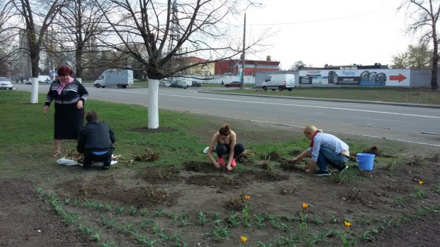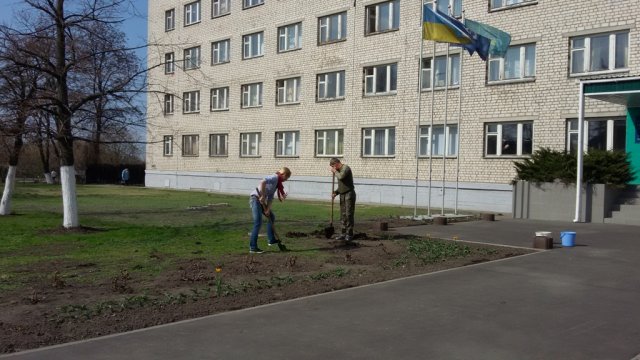 В рамках Програми Року української мови до Дня довкілля та Всесвітнього дня землі на Факультеті здоров’я, фізичного виховання і спорту проведена тематична кураторська година, на якій група ФРб-1-16-4.0д (куратор Яценко С. П.) разом з адміністрацією Факультету посадили квіти-символи України (чорнобривці, мальви, троянди) біля навчального корпусу по вул. Старосільська, 2.