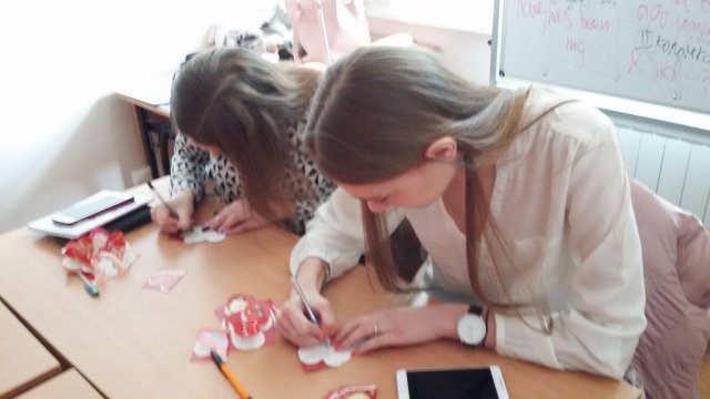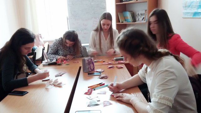13 лютого 2018 Благодійна акція до Дня закоханих На Факультеті відбулась благодійна акція до Дня закоханих. Найгарніші дівчата підписали сто валентинок бійцям, які знаходяться в зоні АТО.