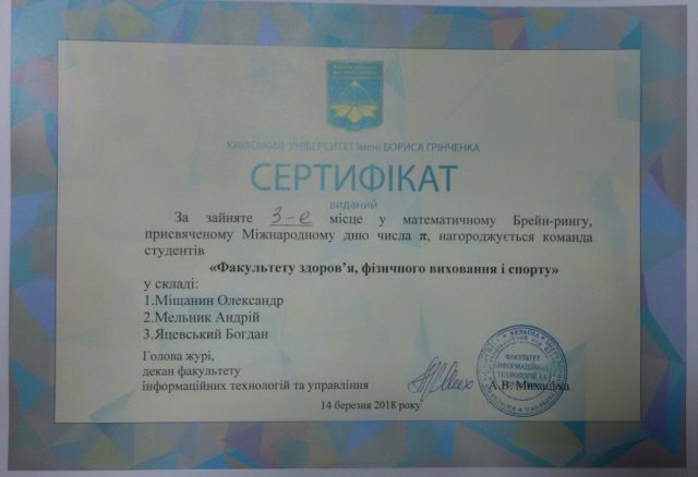 Студенти-математики Факультету інформаційних технологій і математичних дисциплін вирішили відсвяткувати цей день і запросили долучитись студентів до участі в брейн-ринзі. Студенти нашого Факультету вибороли 3-е призове місце!