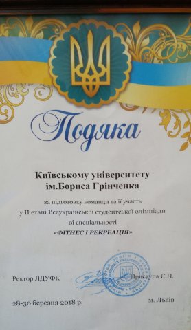 28-30 березня 2018 р. у м.Львів відбувся ІІ етап Всеукраїнської студентської олімпіади зі спеціальності "Фітнес і рекреація", в якому взяли участь 52 учасники з різних ВНЗ України. На олімпіаді Факультет здоров'я, фізичного виховання і спорту представляли студентки 3 курсу Бондар Таміла та Ходосова Діана.